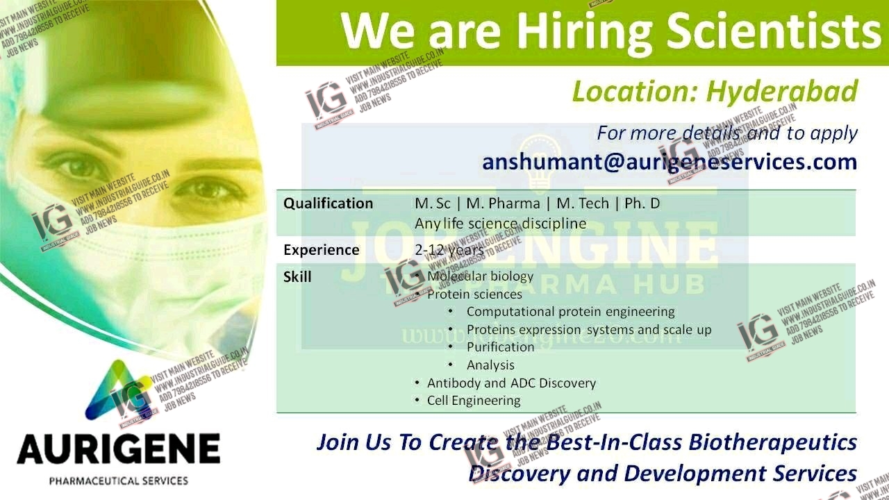 Aurigene Pharmaceutical jobs for M.Sc M.pharm M.Tech Ph.D apply now