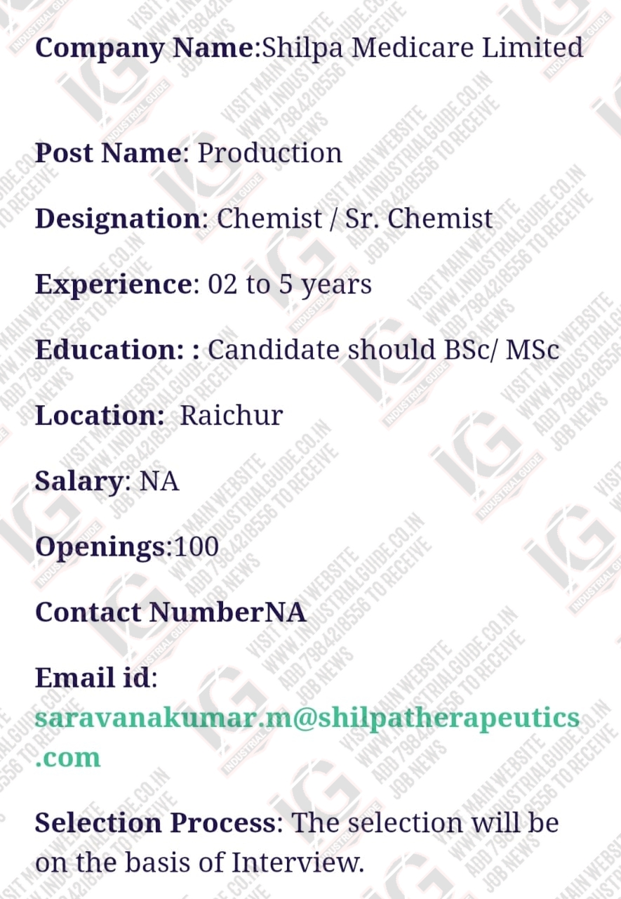Check Disclaimer, Privacy policy for use this dataShilpa Medicare jobs for Production Department apply now