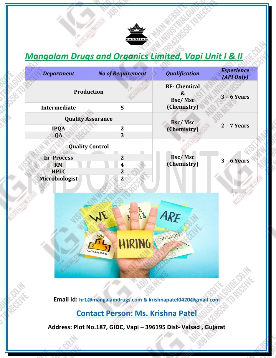 Check Disclaimer, Privacy policy for use this dataMangalam Drugs & Organic Gujarat jobs for Production Quality Control Quality Assurance apply now